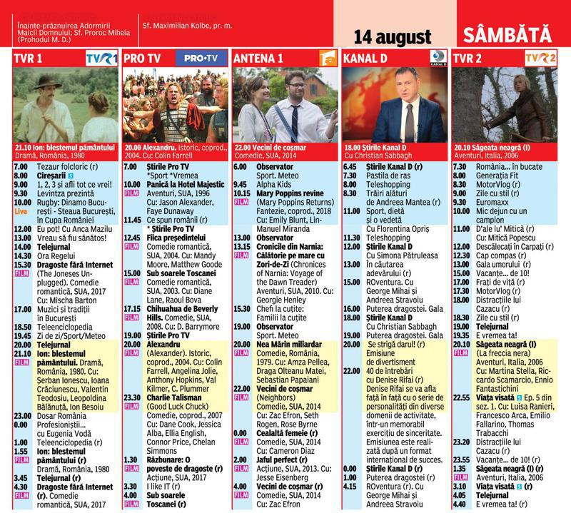 Programe Tv Pentru Azi Sambătă 14 August 2021 Tvmania Ro